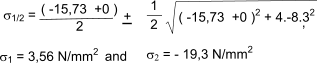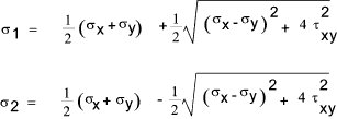 The notes provided on the above identified Mohr's circle webpage show how to determine the principal stresses σ 1 and σ 2 from the direct and shear stresses at a point.