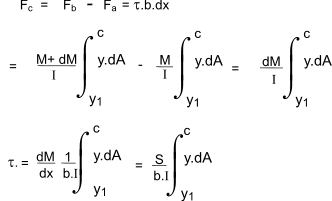 Introduction A normally loaded beam is subject to both bending and shear forces. The standard equations for stress and strain for beams ( flexure formulae ) generally only consider the bending stresses and strains. The shear stresses and strains are not considered as they are generally small relative to the bending stresses and deflections. For normal engineering applications the bending equations are valid if shear forces are present or not. The notes below relate to the evaluation of shear stresses and resultant deflections present in a beam subject to bending and shear forces. Nomenclature