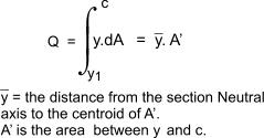 The integral is actually the first moment of area of the vertical face above y1 abut the section neutral axis. For these notes this moment is designated Q