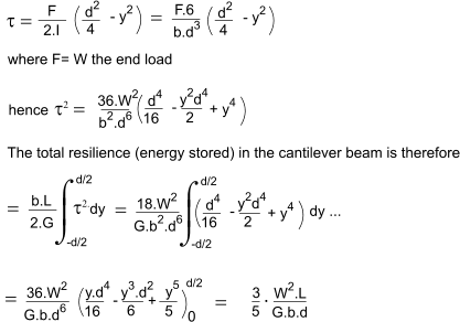 Now consider that the deflection at the free end of the cantilever beam = δ. The shear energy stored =