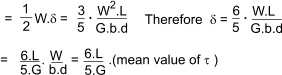 Now consider a beam of length L with an end Vertical force of W. This force is uniform along the whole length of the beam. If the shear force was evenly distributed over the whole section the end deflection due to shear would be L x (angle of shear). deflection = L. φ = L.(τ/G ) or W.L /A,G The shear force is, however not distributed over the whole section. Assuming the various equations above for the distribution of shear stress across a vertical section are correct for a rectangular beam the following derivation of the shear deflection for a cantilever beam is provided.