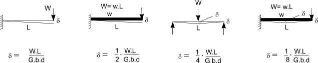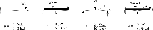 The deflections due to shear stress for other loading scenarios are shown below Rectangular section beams