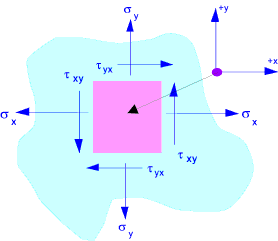The notes above relate to plane stress and the following figure extracted from my notes on Mohr's circle Mohr's circle illustrate that, to maintain equilibrium, the horizontal shear stress i.e τ yx is equal to the vertical shear stress i.e .τ xyat the same point.