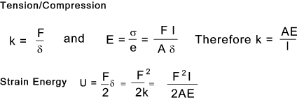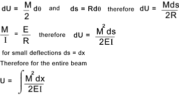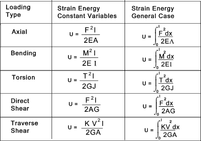 Using similar principles the strain energy for different sections subject to traverse shear can be identified as shown below
