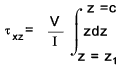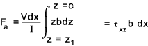 The total increase in axial force over slice dx for the section of the beam from z1 to the outer fibre of the beam is balanced by a shear force = τ xz w dx as shown below.