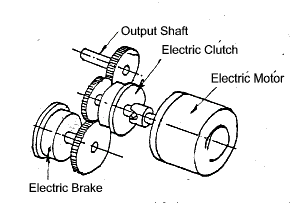 Impact shock and high acceleration are characteristic of any escapement since the load is released and stopped suddenly. Noise & wear can result. However the devices are frequently used whenever high indexing speed and /or precision are required. Linkage escapement Linkages are often used with other machine components to produce intermittent motion. The example below is a typical application using a four bar linkage. Electronic escapements are used mostly in clocks and watches. They are electrically driven mechanical escapements and should not be confused with electronic timers. Clutch Brake Systems A clutch brake mechanism is often used to produce controllable intermittent motion; some manufacturers supply motors with built in clutch brakes. If the clutch and brake are themselves controlled by electrical signals as in the system shown below, the duration of drive and dwell can be easily varied. Power capacity and indexing speed depend of course on motor size and the capacity of the clutch and brake.