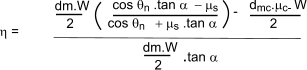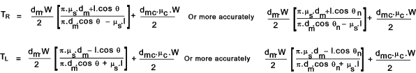For applications where the thrust is taken on ball or roller thrust bearing the value of μc is sufficiently low that it can be taken as approximately 0 and therefore the second term can be ignored. The approximate equations reduce to..