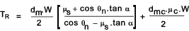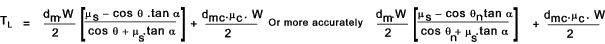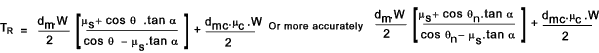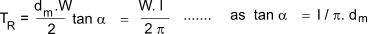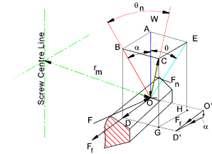 Tr = the torque in Nm to lift the load W (N)// BC = AE = OA tan θ = (OB cosα). tanθ ..therefore For many applications the helix angle is small compared to the thread angle and therefore cos α is approximately equal to 1. e.g. For M20 2.5 pitch the value of cos α = 0.999