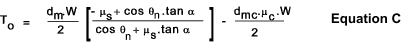 Dividing equation C by this equation provides an equation for the efficiency of the power screw thread.