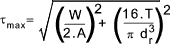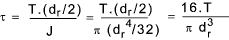 The shear stress τ caused by torque on the screw =