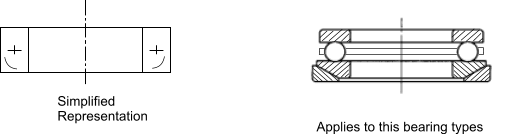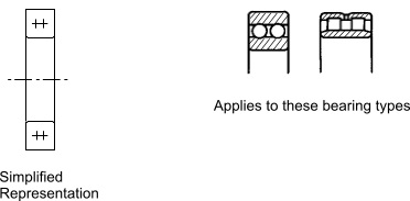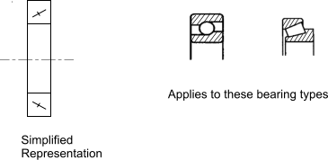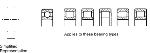 Rolling Bearings Rolling bearings can be shown as detailed views with the housings hatched in the sections. These view would be similar to the views indicated in the bearing catalogues. The standards also allow the bearings to be shown in a simplified way. Some typical illustrations are shown below. .