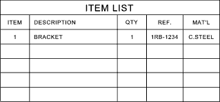 The item list should be orientated to suit the normal reading direction of the drawing.