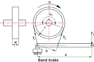 Introduction This is a very simple type of brake using the principle that a band is wrapped part round a rotating drum. Tension can be applied to the band using a lever. The restraining torque results from the difference in tension between the two ends of the belt.