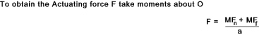 To calculate the maximum braking actuating force it is necessary to take moments about the brake arm pivot point
