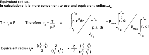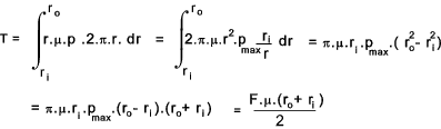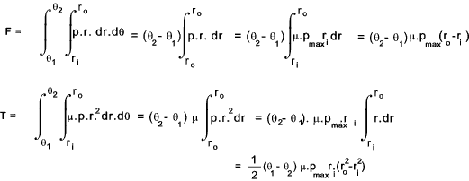 The torque capacity of a brake is the integral of the friction force (μ F) x Radius (r)