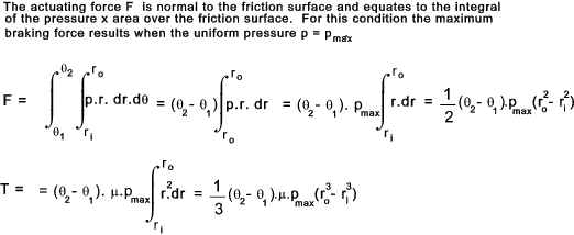 Uniform pressure When considering the capacity of a disk brake subject uniform pressure, every point on the brake face is subject to the the maximum design pressure for the friction material. This condition applies mainly to new brakes