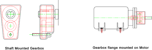 The sketches below show examples of gearboxes mounted in different ways. These are only illustrative sketches and should not be considered as gearbox designs..