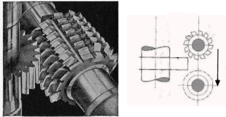 There are various shaving actions : for traverse shaving - the shaving cutter drives the gear which reciprocates in the direction of its own axis.