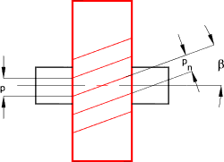 The helix angle of helical gears β is generally selected from the range 6,8,10,12,15,20 degrees. The larger the angle the smoother the motion and the higher speed possible however the thrust loadings on the supporting bearings also increases. In case of a double or herringbone gear β values 25,30,35,40 degrees can also be used. These large angles can be used because the side thrusts on the two sets of teeth cancel each other allowing larger angles with no penalty For helical gears the circular pitch is measured in two ways