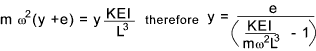 When the denominator = 0 ,that is [ KEI / m ω 2 L 3 ] = 1 , the deflection becomes infinite and whirling takes place.
