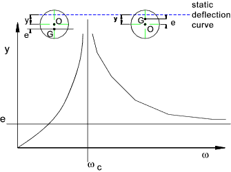 This curve shows the deflection of the shaft (from the static deflection position) at any speed ω in terms of the critical speed. Cantilever rotating mass Mass of shaft neglected