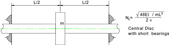 Central rotating mass - Short Bearings Mass of shaft neglected
