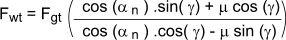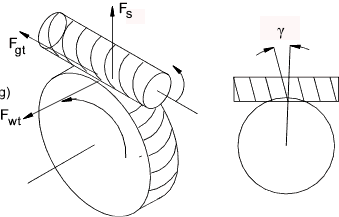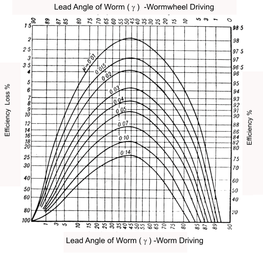 γ = Worm lead angle = (180 /π ) tan-1 (z 1 / q)(deg) ..Note: for α n= 20o γ should be less than 25o