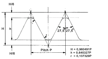 This standard "Pipe threads where pressure-tight joints are not made on the threads." are whitworth form threads for parallel fastening threads that are generally used for fastenings purposes in the mechanical assembly of fittings including valves, accessories etc. Pressure tight joints are not made on the threads but may be made by using the threads to compress together surfaces onto seals. The crests of the basic web form may be truncated, within the limits in the last two columns of the table below, except when they are likely to be used in conjunction with an external taper thread conforming to BS EN 10226. When the thread forms are not truncated they are identical to the threads in BS EN ISO 0228