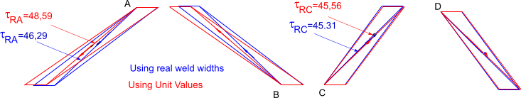 1) The area of the fillet weld A u..(unit thickness) is calculated assuming the weld is one unit thick..