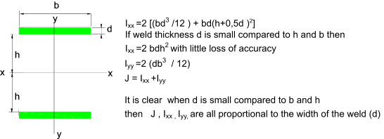 2) The (unit) Moment of Inertia I u is calculated assuming the weld is one unit thick..