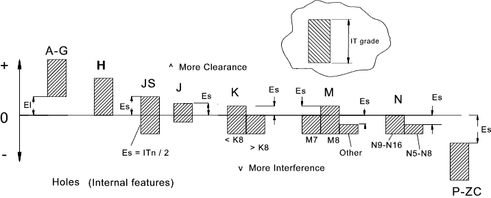ISO Hole Nearest Dim to Zero (Fundamental Deviation) ..Holes sizes 0-400mm...