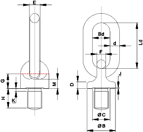 | Safe Working Load | Metric Thread | B | C | D | E | F | G | H | J | K | L | M | Link | ||