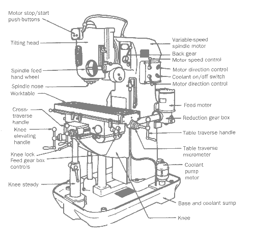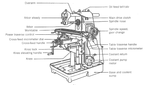 Column and Knee Machine - Horizontal Milling Machine This is the basic milling machine configuration. The workpiece can be fed in all three axes and is suitable for short production runs but it is not as rigid as a fixed bed machine and should not be used for heavy duty work. Because of the large number of controls it is relatively slow to operate.