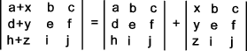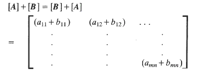 7) A Symmetric matrix is one with a ij = a ji 8)A null matrix has all elements = 0 9)The addition of matrices are completed as follows:-