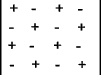 Associated with each element is a sign (+ or -) this is established by counting the number of row and column steps to get from the first element and if the steps are 0 or even the sign is (+ ) and if the steps are odd the sign is ( - ). e.g.