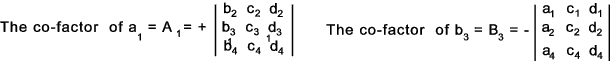 The co-factor of and element is the minor of the element x the relevant sign. e.g.
