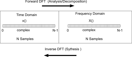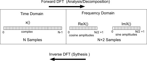 Note: The process of transforming the input data (normally-time domain) into the frequency domain is called analysis. The reverse process is called synthesis.