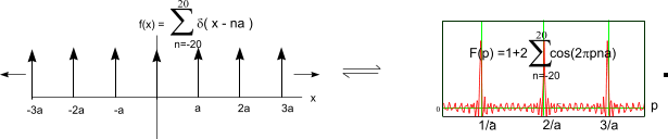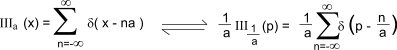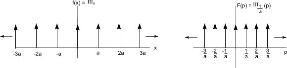 The Fourier transfor of a Dirac comb III a ( x ) is another Dirac comb ( 1/a ) III 1 / a( p )