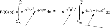 Note: The e exponent -( j.2. π p.x + x2 /a 2 ) can be replaced ( by completing the square with ) - ( x / a + j π.p.a) 2 - π 2 .p 2.a2 Making ( x/a + j π p a) = z so that dx = a dz results in