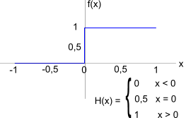 5) The Heaviside Function" H(x) . The Heaviside function is a unit step at x = 0 and is shown below