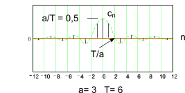 Note: The values shown for cn are discrete values this is not a continuous function Example: Complex exponential based Fourier Series for function, as above offset by retarded by a/2 as shown below