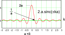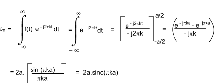 Note: The expression sin(x) / x which occurs frequenty in Fourier Transforms is given the special name sinc(x). As limit sinc(x) for x -> 0 = 1 then it is accepted that sinc (0) = 1. The above equation can therefore be rewritten as