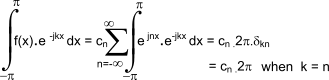 The discrete summation tends to a continuous integration with kn replaced by a variable k and cn becoming a function of k . That is the equation evolves as shown below