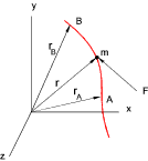 It is assumed that all motions are within the plane and rotations are around axes perpendicular to the plane. Infinitesimal counterclockwise rotations are positive and are therefore represented by vectors perpendicular to the plane as indicated by the right hand rule- If the plane is the x-y plane then angular velocities are in the positive z direction. It should be noted that large rotations and angular velocities do not follow vector rules.. Free Body Diagram A free body diagram is an extremely useful tool for assessing the interaction of forces on bodies This is essentially a sketch of a body which is in equilibrium and is entirely separate from the surroundings. The only rule for drawing free-body diagrams is to depict all the forces which exist for that object in the given situation. Particle Kinetics. Newtons laws Newtons First Law; Newtons Second law; Newtons Third law The momentum is defined simply as the product of mass and velocity..The first law states that if a body changes its velocity then a force must have been applied. The second law establishes a relationship between the magnitude of the force and the change in momentum.. Force = k. d(momentum)/dt = k.d(mv)/dt = k.m dv/dt = k.m. a In the metric ISO system the unit of force of 1 Newton (N) on a mass of 1 kg results in a linear acceleration of 1 m/s 2 therefore k = 1. m 1. u 1 + m 2. u 2 = m 1. v 1 + m 2. v 2 ... therefore m 1 . ( v 1 - u 1 ) = m 2( v 2 - u 2 ) Equations of Motion for a particle under different force regimes 1) Force = constant value.. F = C= constant = mass x acceleration.. m. dv/dt = C Falling masses under the effect of gravity provides an example of this condition m.dv/dt = F(t) Using F(t) the equation for the velocity can be determined by integration, and again the displacement can be found from ds = vdt. m. dv/dt = F(v) Example: The resistance to motion of drag or viscous damping when the force = C x velocity where c = the damping coefficient.. m. dv/dt = F(s) Example : The force developed by spring = k x s where k is the stiffness of the spring. Circular motion .. A mass rotating in a circle is accelerating towards the centre of the circle at a rate of acceleration of v2 /r. The force pulling the body into the centre of the circle is the centripetal force. (if the mass is spinning on a string the centripetal force is the tension in the string). The reaction force at the centre of the circle is the centrifugal force. There is no force pulling outwards on the circling body there is only a force pulling in Rigid Body Kinetics. Considerations of rigid objects are simplified if ...