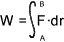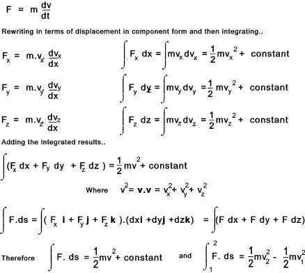 If a force is acting on a particle as it move from A to B . The work done as the particle moves a small distance dr = F. dr . The work done is the product of the Force vector and the displacement vector. Only the force component in line with the displacement component contributes to the work done. Work is a scalar quantity and is measured in N.m (ISO units)