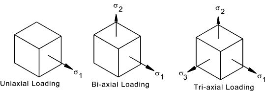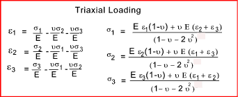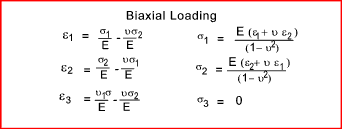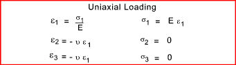 The table below identifies the stress strain relationships for each of the three loading systems as illustrated.