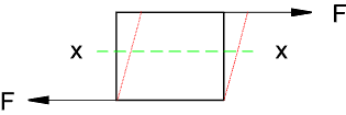 If an applied load consists of two equal and opposite forces which are not in the same line then the material being loaded will tend to shear as shown.