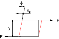 A shear stress produces a shear strain as is shown below. The shear strain is defined δ x / y which for the small deflections -> φ. The shear strain is dimensionless and is measured in radians