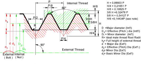 | External (bolt thread)- 6g Class | Internal (nut thread)- 6H Class | |||||||||||||||