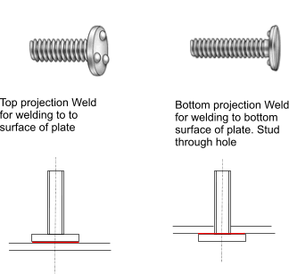 Arc stud welding is generally used to weld large diameter fasteners to rougher and thicker base metals. Arc studs may be almost any shape and there are literally hundreds, however, they must have one end of the fastener designed for Arc welding. Mild steel, stainless steel, and aluminum are applicable materials for Arc stud welding. Weld Bolts - ref BS 7670 parts 1& 2.Weld bolts and weld nuts are welded to the base plate using the arc process and the process is facilitated by have projections on the face to be welded. See figure below.